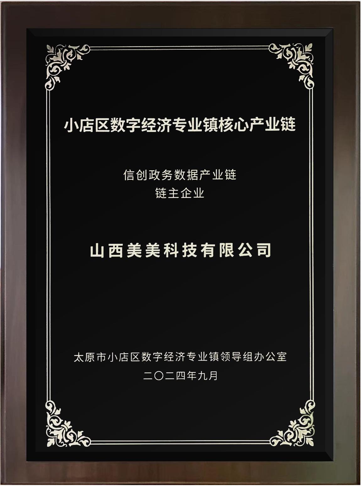 喜报!美美科技荣获小店区数字经济专业镇信创政务数据产业链链主企业